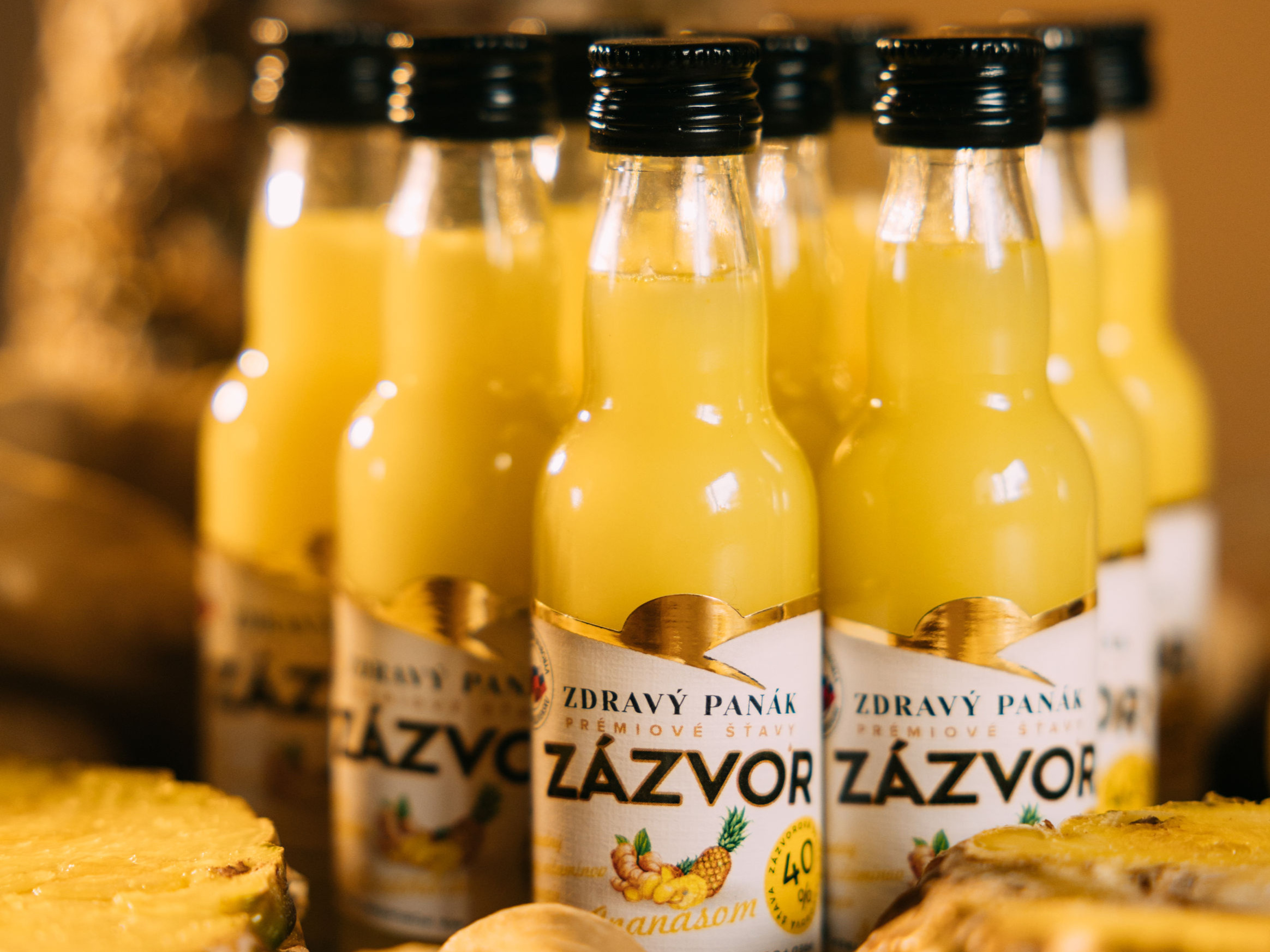 40 % zázvorová šťava, ananásová šťava, slovenský med, citrónová šťava, vitamín C.